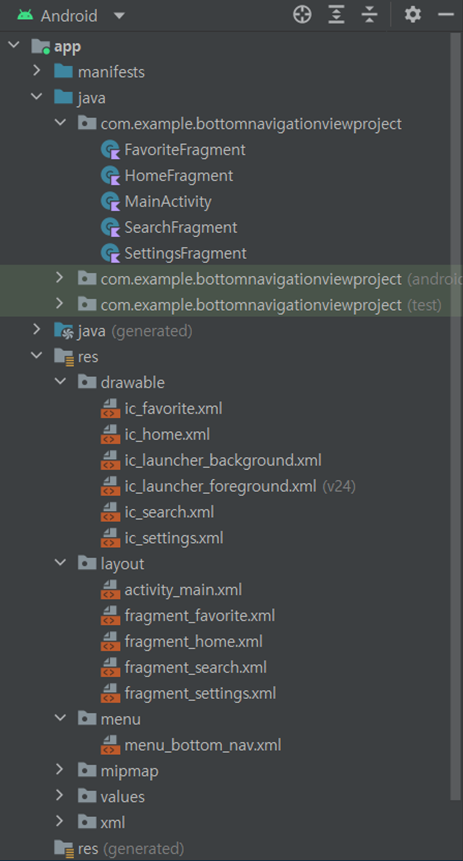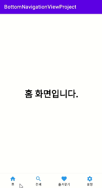 BottomNavigationView는 메뉴 항목에 따라 화면을 전환하는 역할을 수행하는데 전환되는 화면은 Fragment로 구성합니다.
