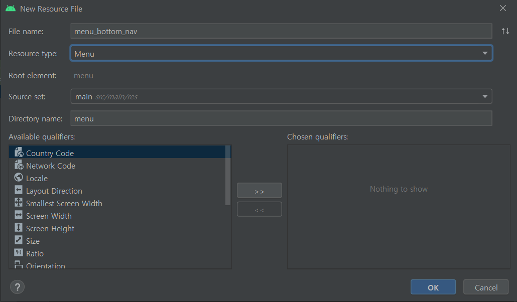 res/menu에 BottomNavigation에 사용할 메뉴를 생성합니다.