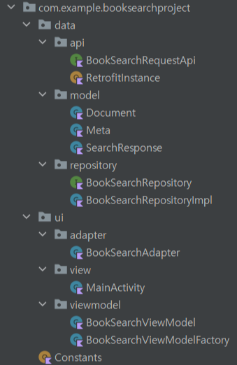 마지막으로 inner class인 BookSearchViewHolder에서 바인딩된 각각의 뷰와 데이터를 연결합니다.