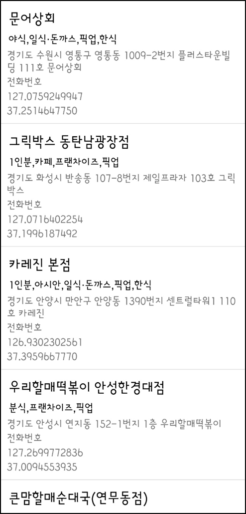 저는 경기도데이터드림 사이트의 '경기도 공공배달앱 배달특급 가맹점' 오픈 API를 이용하겠습니다.