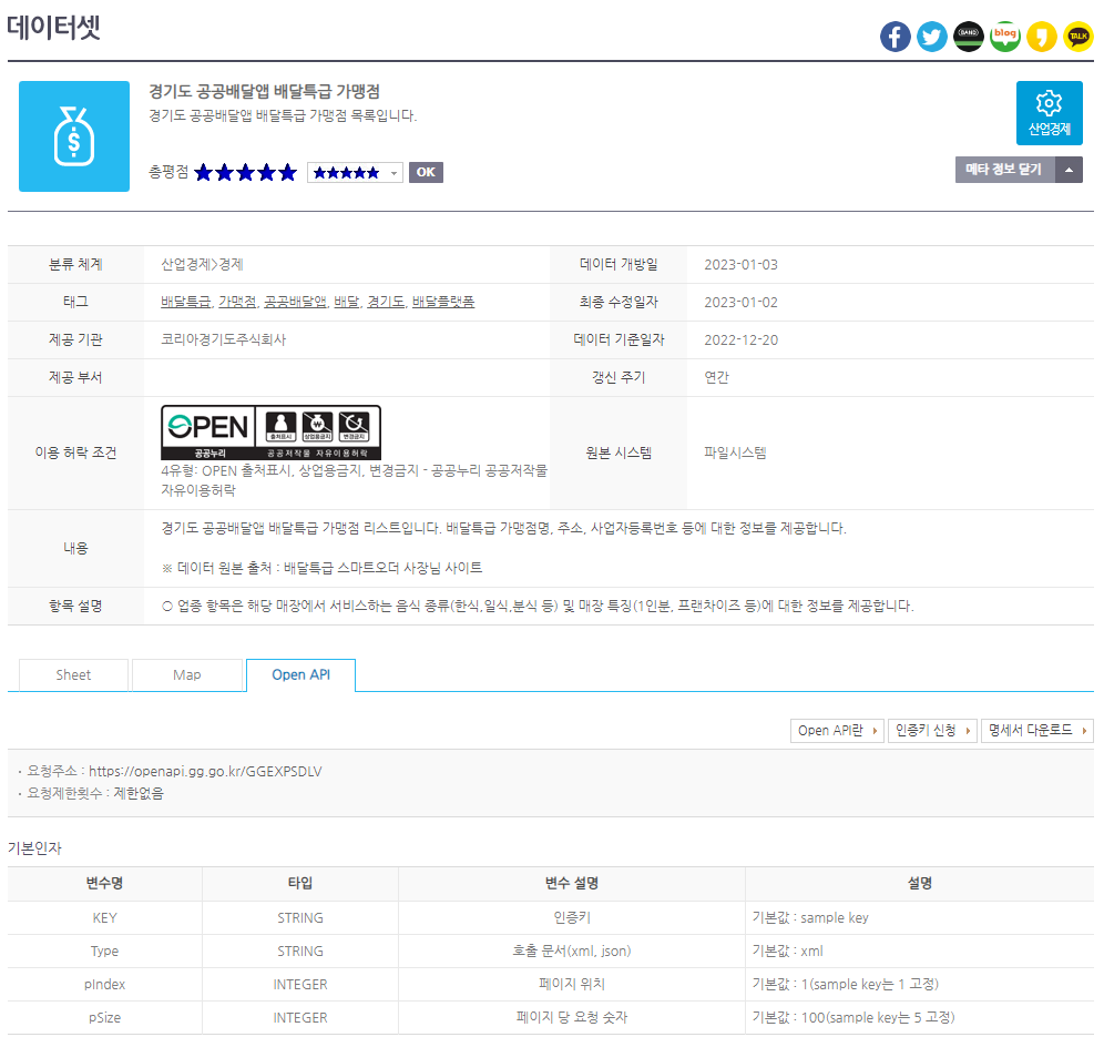 경기도 공공배달앱 배달특급 가맹점 | 데이터셋 상세 Open API | 경기데이터드림