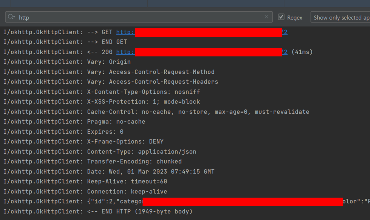 이제 Logcat에서 Http 통신 결과를 위의 예시처럼 확인할 수 있습니다.