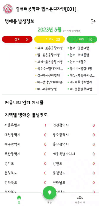▷ 국가농작물병해충관리시스템(NCPMS)의 병해충 관련 OpenAPI와 농약안전정보시스템의 농약 등록정보 OpenAPI를 이용해 병해/방제 정보를 제공합니다.