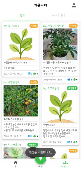 ▷ 농업인들이 본인만의 경험이나 노하우를 공유하고, 자유롭게 질의응답이 이루어질 수 있도록 자체적인 커뮤니티를 구성했습니다.