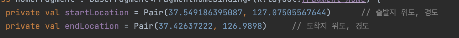 val url ="kakaomap://route?sp=${startLocation.first},${startLocation.second}&ep=${endLocation.first},${endLocation.second}&by=FOOT"