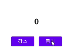 위 코드에서는 증가 / 감소 버튼을 클릭 시 viewModel.liveData의 value 값에 1을 더하거나 빼도록 코드를 작성했습니다.