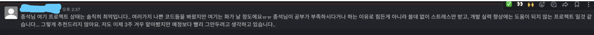 팀원들 모두 정말 좋았고 단기간에 하나의 프로덕트를 만들어본다는 경험 자체는 너무 좋았지만 해커톤은 한 번으로 충분한 것 같다...ㅎㅎ